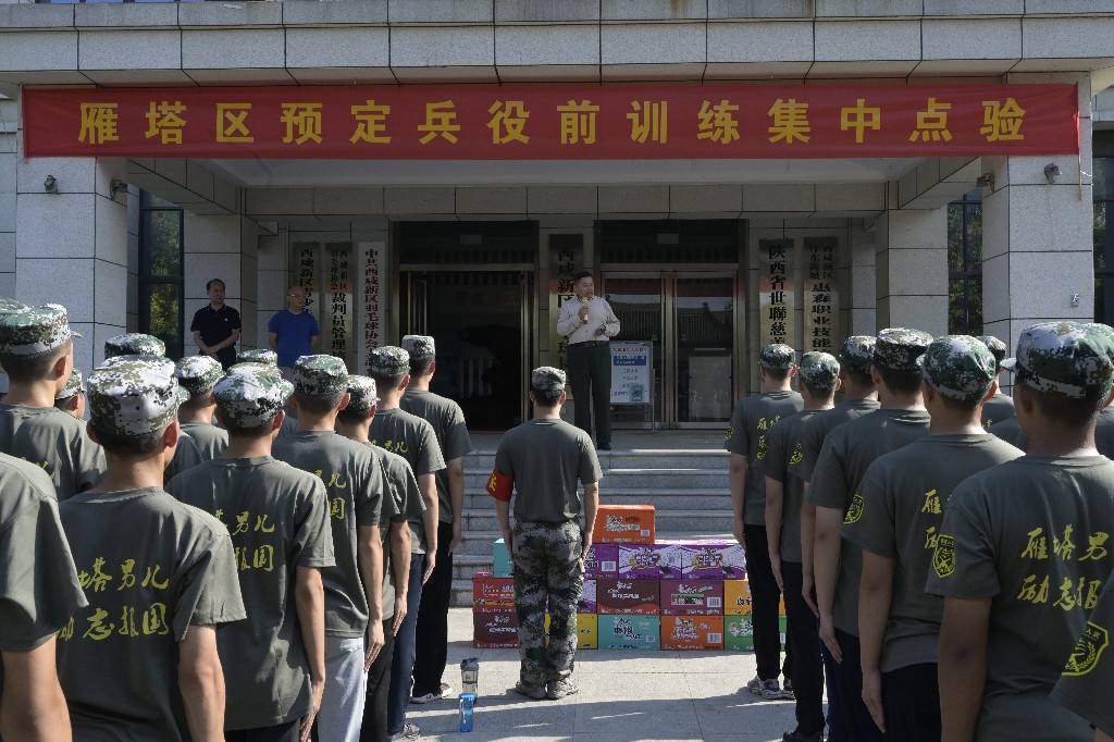 2021年9月11日,陕西省世联慈善基金会王卫宏、胡长才会长及基金会拥军志愿者代表共同到西安市雁塔区2021年度夏季入伍新兵服役前集训场,看望、慰问130余名即将入伍的战士。