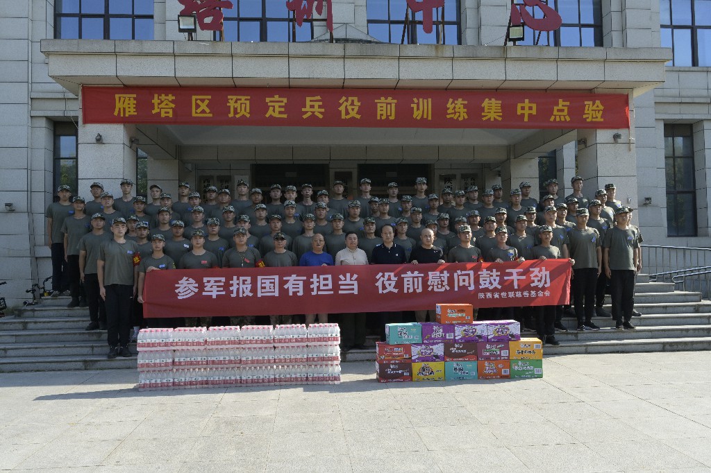 最后,陕西省世联慈善基金会为役前训练新兵送上慰问品,叮嘱他们在训练过程中注意安全,以良好的精神风貌参军报国。